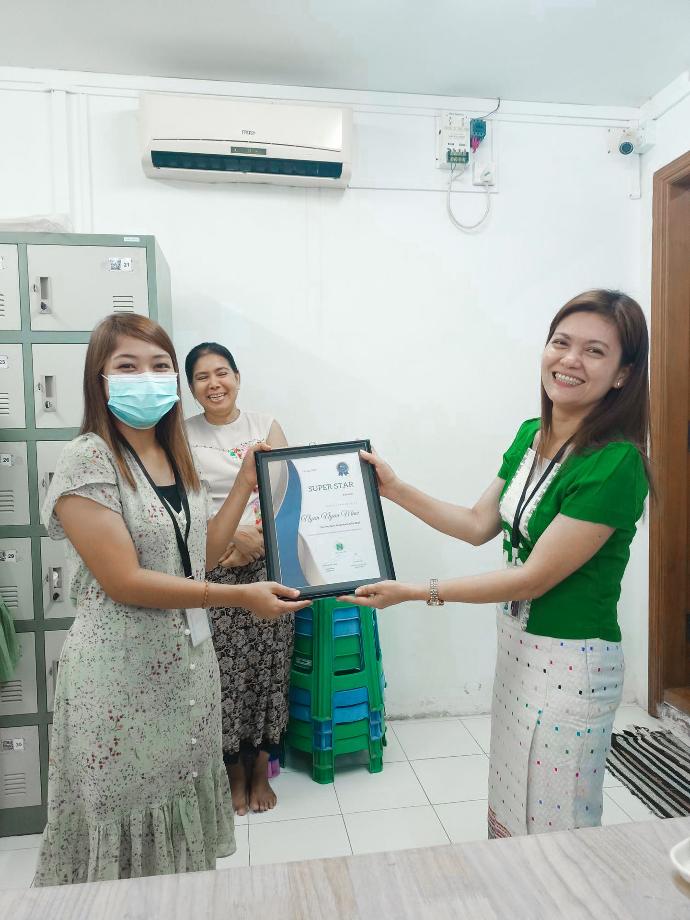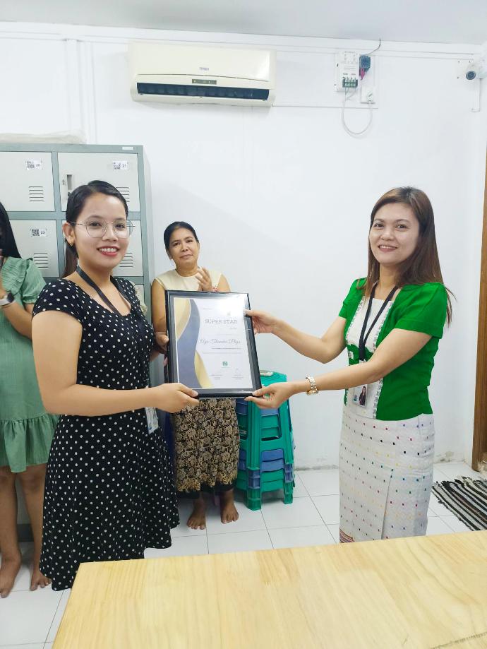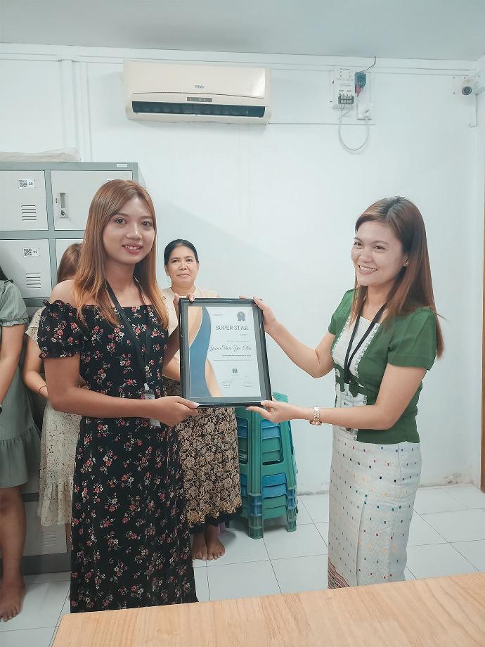 Ma Nyein Nyein Maw, Ma Ei Ei Moe, Ma Aye Thandar Phyo and Ma Yoon Shwe Yee Thin awarded a Super Star award for consistently arriving to work on time and never taking sick days in 2023.